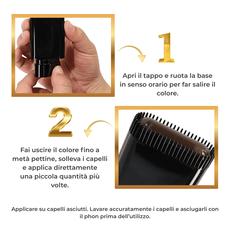 In pochi secondi ridai giovinezza ai tuoi capelli: tre nuance che si fondono perfettamente al tuo colore e una formula sicura, non tossica e non irritante, per una tenuta di 20h.